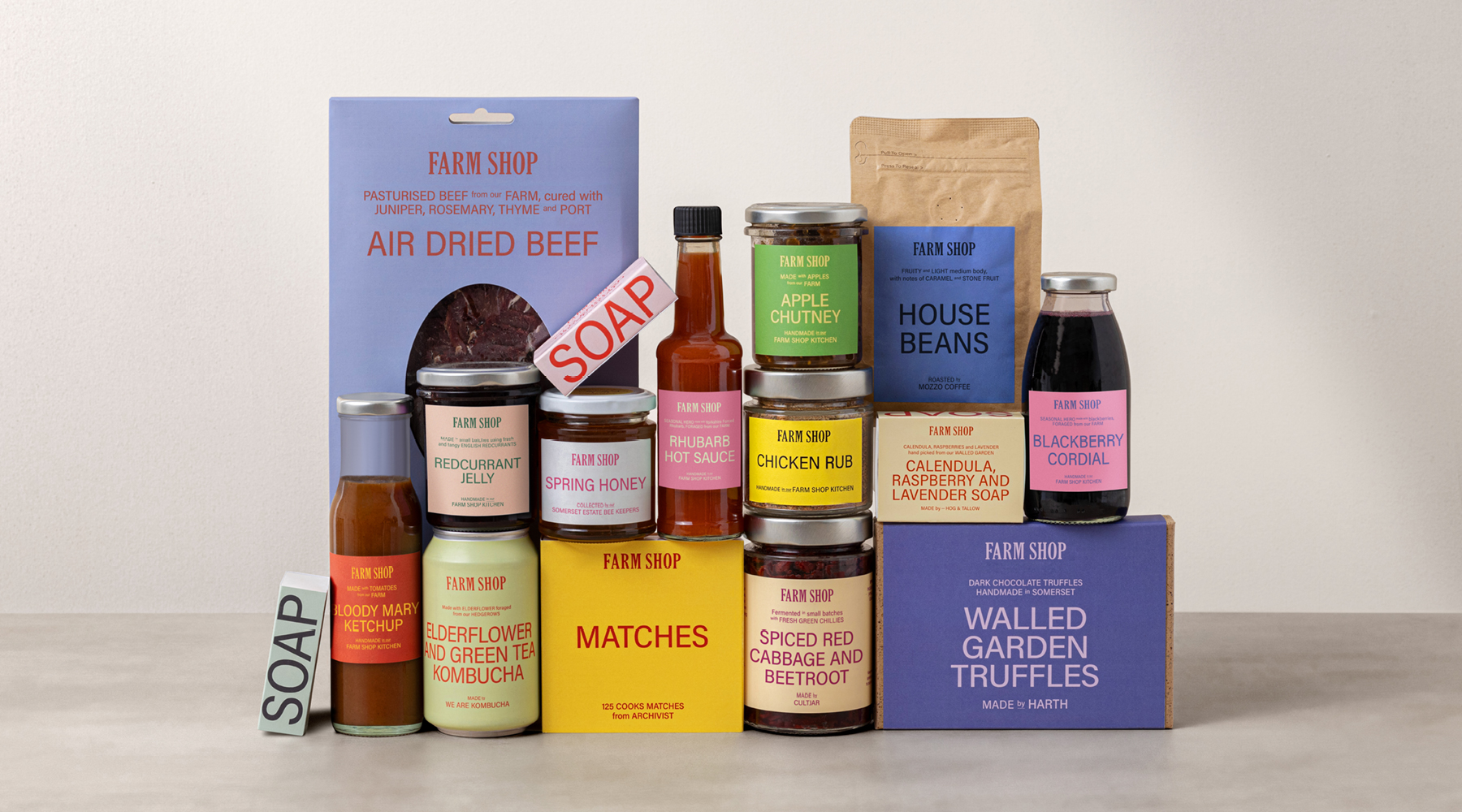 Packaging Design + In-store DesignFarm Shop was founded by ArtFarm, an independent hospitality company, and began as a small luxury produce store nestled alongside their gallery in Bruton, Somerset. With a focus on high-quality, seasonal products crafted from the produce grown in and around their farm, Farm Shop quickly gained a loyal following. Its success inspired ArtFarm to expand the brand, bringing their exceptional offerings to a wider audience with the launch of a new store in the heart of Mayfair, London.
