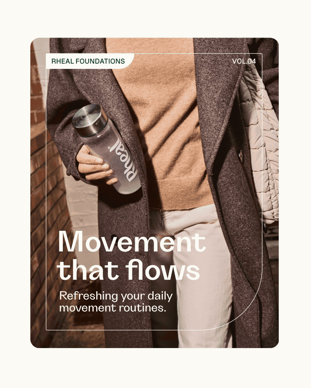To reinforce Rheal’s boldly honest new brand, we created a typographic palette built around just two typefaces. Each serves a distinct role inspired by the brand positioning, Natural Power. For Real Life. Grotta (left) reflects Rheal’s natural power, while Lost (right) brings a joyfully functional tone to the system.